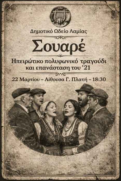 Συνεχίζεται στο Δημοτικό Ωδείο Λαμίας ο κύκλος εκδηλώσεων με τα απογευματινά Soiree (Σουαρέ) στο αρχοντικό του Γεωργίου Πλατή, την Κυριακή 22 Μαρτίου και ώρα 18:30.