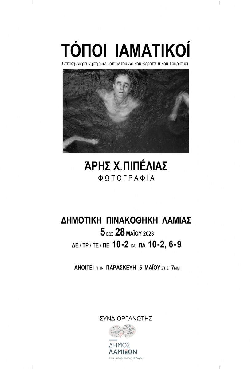 Ο Δήμος Λαμιέων και ο Άρης Πιπέλιας σας προσκαλούν να επισκεφτείτε την έκθεση φωτογραφίας με τίτλο: «Τόποι Ιαματικοί – Οπτική Διερεύνηση των Τόπων του Λαϊκού Θεραπευτικού Τουρισμού», την Παρασκευή 5 Μαΐου, στις 7 μ.μ., στη Δημοτική Πινακοθήκη Λαμίας, η οποία θα διαρκέσει μέχρι τις 28 Μαΐου 2023.
