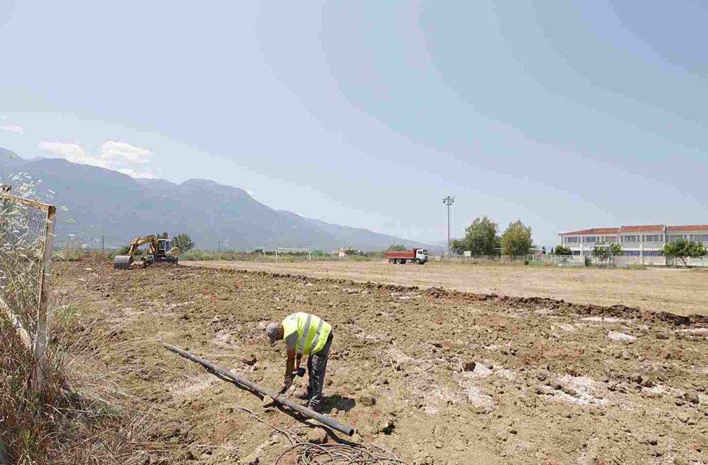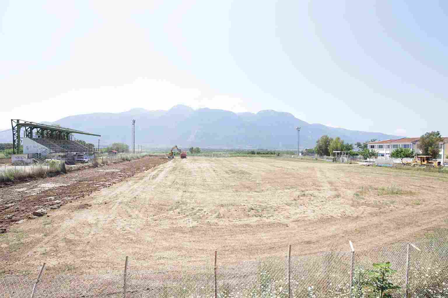 α) εγκατάσταση φυσικού χλοοτάπητα στον αγωνιστικό χώρο του κανονικού γηπέδου, συνοδευόμενη από τις απαραίτητες εργασίες διάστρωσης εδαφικού υποστρώματος, νέων δικτύων άρδευσης και περίφραξης, καθώς και όλες τις απαιτούμενες επιμέρους παρεμβάσεις.