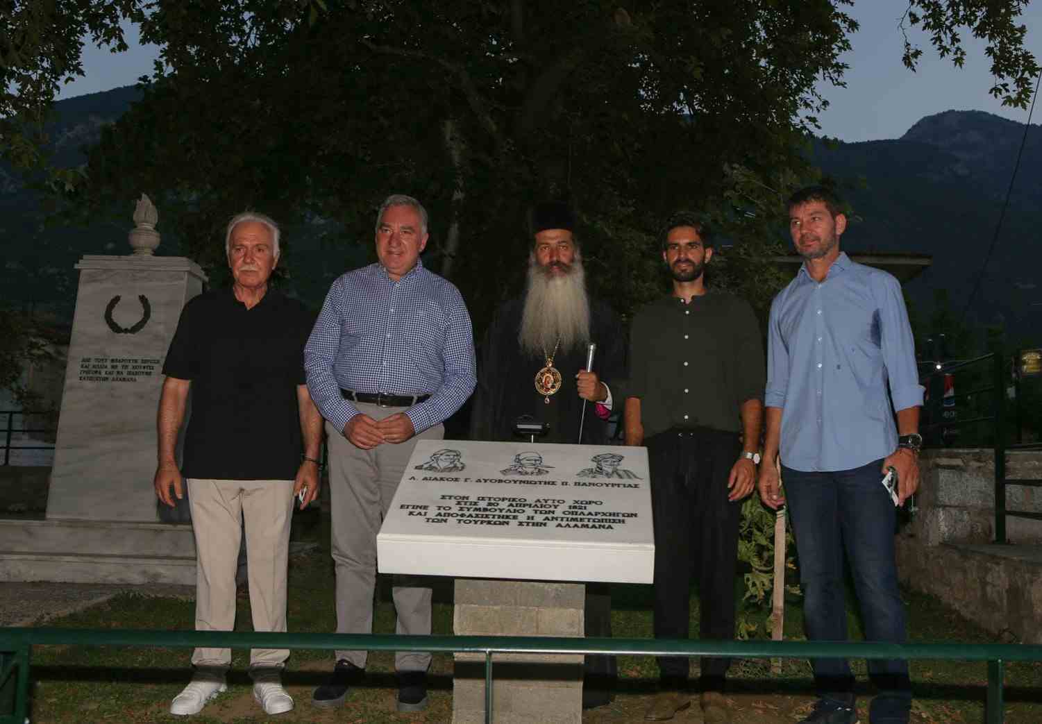 Η «αναβίωση» εκ των ιστορικότερων στιγμών της Ελληνικής Επανάστασης και ένας ελάχιστος φόρος τιμής στους τρεις ήρωες οπλαρχηγούς – αγωνιστές της Ελληνικής Επανάστασης, τον Διάκο, τον Δυοβουνιώτη και τον Πανουργιά που έκαναν συμβούλιο στην πλατεία του χωριού και αποφάσισαν την αντιμετώπιση των Τούρκων στην Αλαμάνα, «αποτυπώθηκαν» με εντυπωσιακό τρόπο το βράδυ της Δευτέρας στην Κεντρική Πλατεία Κομποτάδων, με την τελετή αποκάλυψης της ανάπλασης του περιβάλλοντα χώρου του ιστορικού μνημείου «Πέντε Αδέρφια». Μια ιστορική παρακαταθήκη και ένα ηχηρό μήνυμα του συμβολισμού της θυσίας των τριών οπλαρχηγών αλλά και όλου του ένδοξου Ελληνικού Γένους με ανεξίτηλη σφραγίδα της αυταπάρνησης για μια ελεύθερη Ελλάδα.