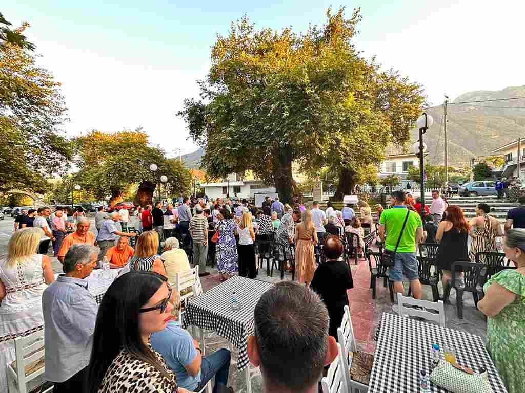 Κι εδώ λοιπόν, απόψε, συναντηθήκαμε όχι για να υπερηφανευτούμε για ένα έργο που όφειλε να υλοποιηθεί, αλλά για να τιμήσουμε μέσω της ανάπλασης του περιβάλλοντος χώρου του ιστορικού μνημείου “Πέντε αδέρφια”, έναν χώρο που γράφτηκε στις σελίδες της Ιστορίας μας και έμεινε στις καρδιές μας ως τοπόσημο συνεργασίας.
