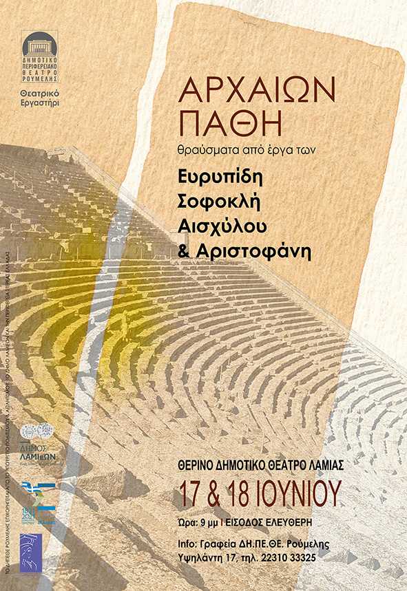 Το Θεατρικό Εργαστήρι του Δη.Πε.Θε. Ρούμελης, σας προσκαλεί στην παράσταση «Αρχαίων Πάθη», το Σάββατο 17 και την Κυριακή 18 Ιουνίου, στο Δημοτικό Θερινό Θέατρο Λαμίας, στις 21:00.