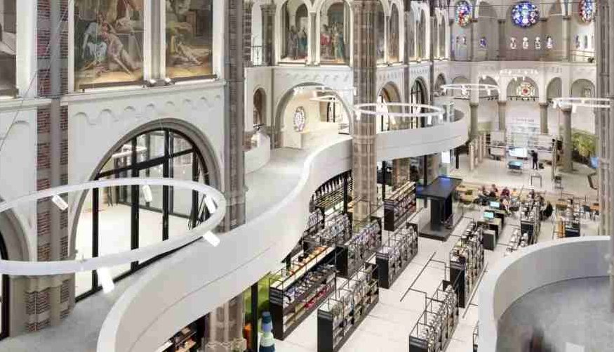 Στην ολλανδική πόλη Vught, ένας ερειπωμένος ναός του 19ου αιώνα μεταμορφώθηκε από το αρχιτεκτονικό γραφείο Molenaar & Bol & vanDillen Architecten σε ένα πολυλειτουργικό κοινοτικό κέντρο που περιλαμβάνει μουσείο, καταστήματα, εστιατόριο και την περίφημη βιβλιοθήκη DePetrus. Οι αρχιτέκτονες διατήρησαν την κάτοψη και τα παράθυρα με τα βιτρό, σχεδίασαν έναν χώρο μελέτης στον πάνω όροφο που έχει θέα στον ναό, ενώ τα βιβλία τοποθετήθηκαν σε ράφια με ράγες που μετακινούνται εύκολα ώστε ο χώρος να μπορεί να χρησιμοποιηθεί για εκδηλώσεις.