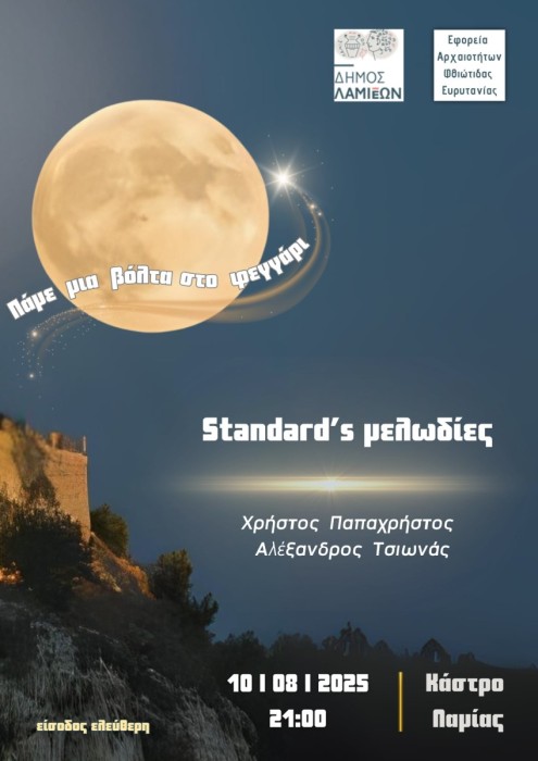 Την Κυριακή 10 Αυγούστου στις 21:00, στο Κάστρο της Λαμίας «Standard’s μελωδίες» με ήχους κιθάρας, σαξοφώνου και τις φωνές του Χρήστου Παπαχρήστου και του Αλέξανδρου Τσιωνά.