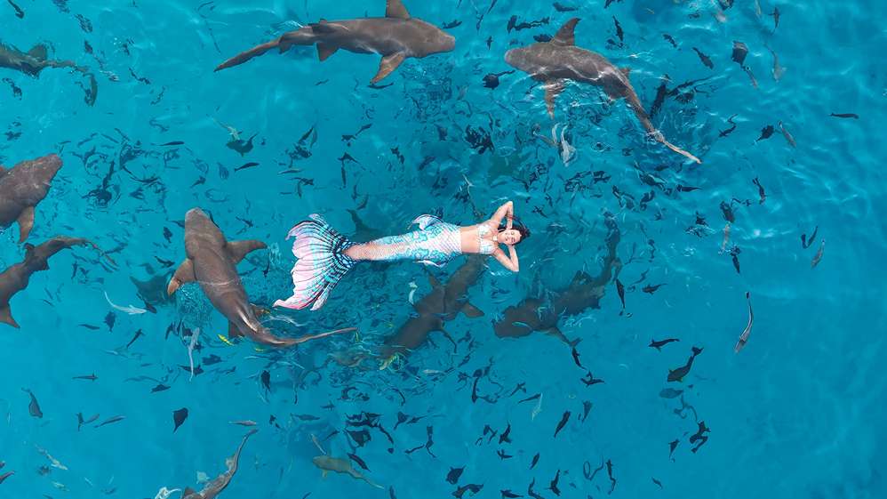«Ένιωσα αρχικά βαθιά συγκίνηση μόλις είδα τους καρχαρίες κάτω από το νερό. Πρώτα κολυμπήσαμε μαζί τους με τις μάσκες κι έπειτα ήταν ώρα να φωτογραφηθούμε με τις ουρές μας. Ένιωσα ακόμη καλύτερα κολυμπώντας με την ουρά της γοργόνας, που για μένα είναι πλέον ένα κομμάτι του εαυτού μου», λέει και προσθέτει πως δεν τρόμαξε ούτε για στιγμή, κάτι εξάλλου που φαίνεται και από τις φωτογραφίες. Φαίνονται δεκάδες καρχαρίες γύρω της και τόσο κοντά της, που μοιάζουν με …ψεύτικοι κι ενώ οι δύσπιστοι θα έλεγαν ότι πρόκειται για φωτομοντάζ, οι λήψεις είναι πέρα ως πέρα αληθινές.