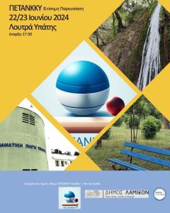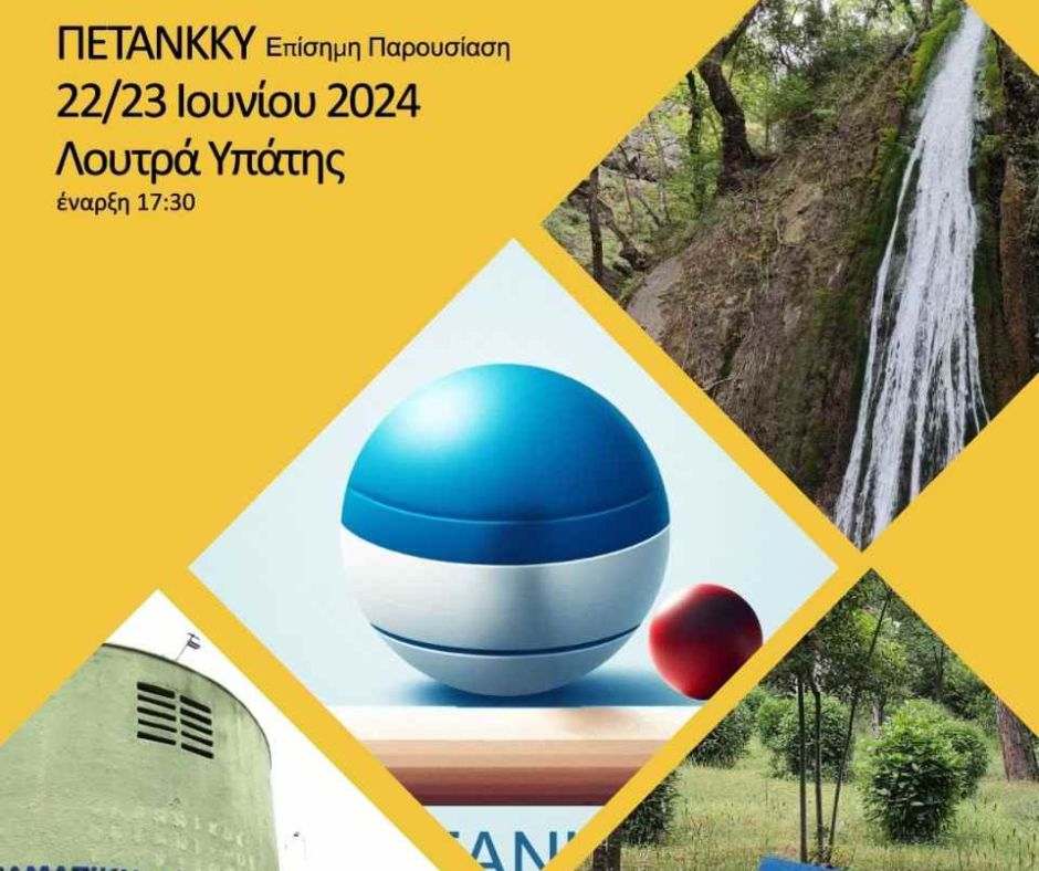 Ο όμιλος φίλων Πετάνκυ Ελλάδος σε συνεργασία με το Atrica Petanque Club διοργανώνει επίσημη παρουσίαση της νέας δραστηριότητας αθλητικής αναψυχής ΠΕΤΑΝΚΚΥ, το Σάββατο 22 Ιουνίου και την Κυριακή 23 Ιουνίου, στα Λουτρά Υπάτης Φθιώτιδος, υπό την αιγίδα του Δήμου Λαμιέων.