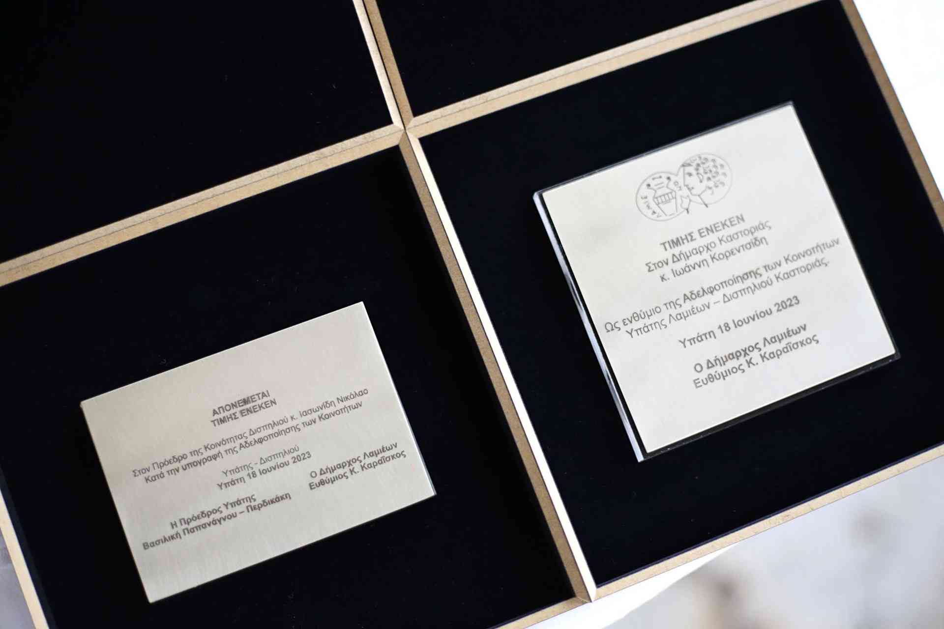 Με το τέλος της τελετής αδελφοποίησης Δήμαρχος Λαμιέων Θύμιος Καραΐσκος απένειμε αναμνηστικό δώρο και στον Μητροπολίτη Καστοριάς κ.κ. Καλλίνικο.