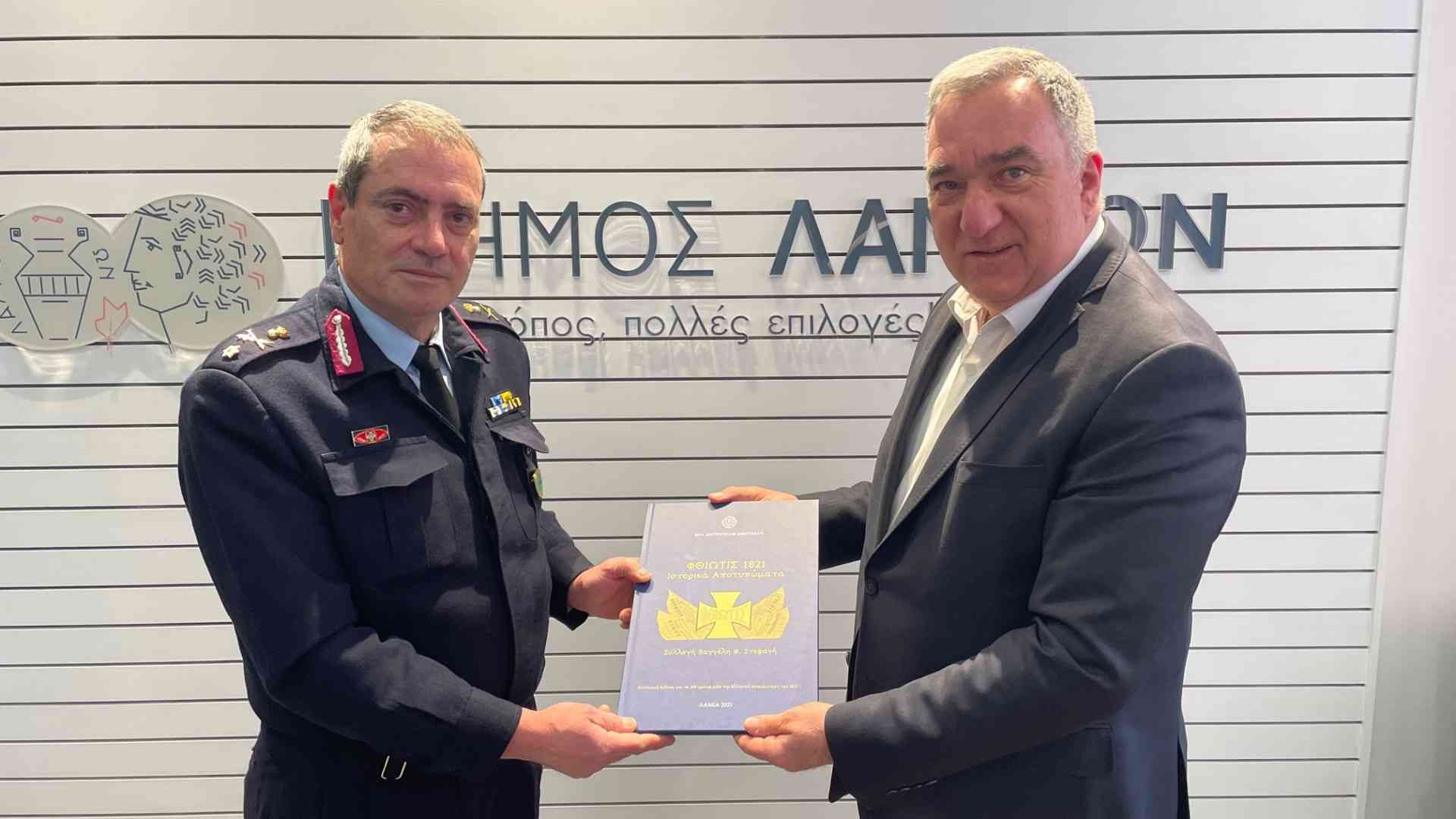 Επίσης ο Δήμαρχος Λαμιέων με τον αντιδήμαρχο Παναγιώτη Φώσκολο υποδέχθηκε λίγη ώρα αργότερα στο γραφείο του το νέο Γενικό Περιφερειακό Αστυνομικό Διευθυντή Στερεάς Γιώργο Καραχάλιο και το νέο Αστυνομικό Διευθυντή Φθιώτιδας Χρήστο Μουτσώκο, με αφορμή την ανάληψη των νέων τους καθηκόντων, σε μια συνάντηση που ξεπέρασε τα πλαίσια της εθιμοτυπίας καθώς συζητήθηκαν θέματα αιχμής για την αστυνόμευση σε όλα τα επίπεδα.
