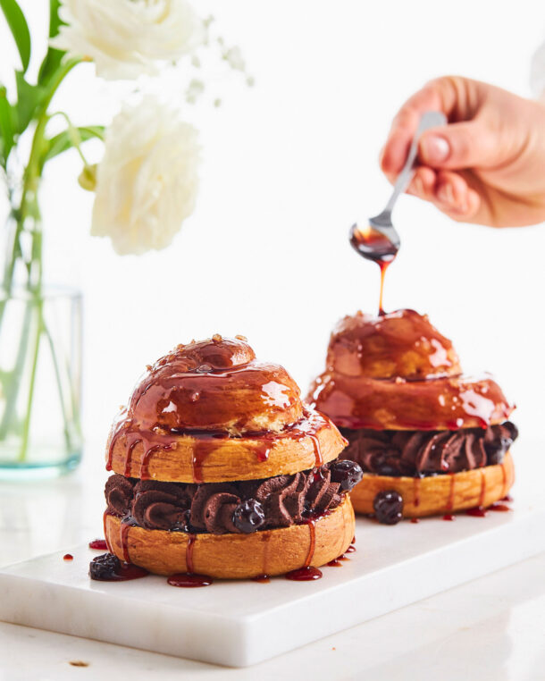 Τσουρεκάκια γεμιστά με σοκολάτα και σιροπιασμένα με βύσσινο