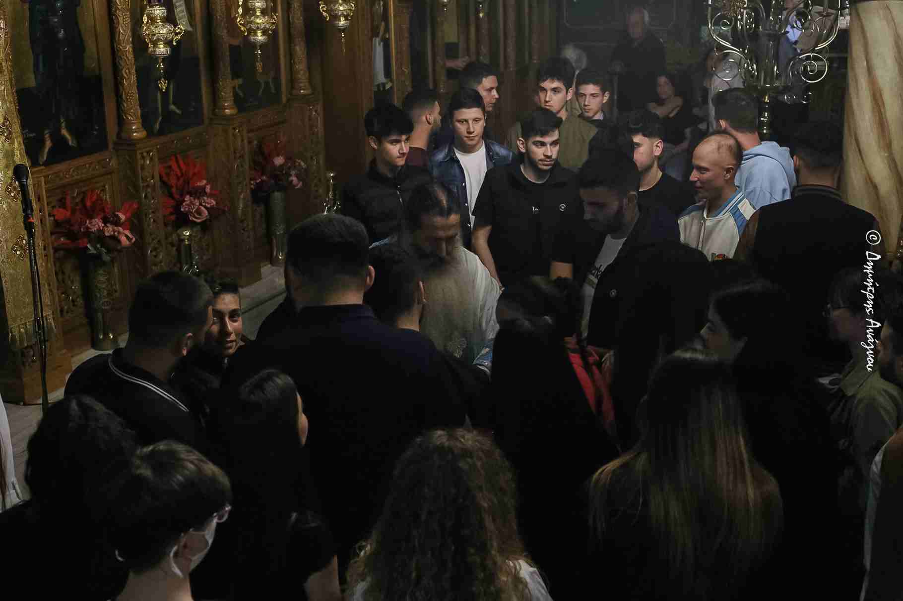 Ο Σεβασμιώτατος χθες το βράδυ, τέλεσε στον και κατάμεστο από νέους και νέες Ιερό Ναό των Αγίων Θεοστέπτων Βασιλέων Κωνσταντίνου και Ελένης Ιερά Αρχιερατική Αγρυπνία, αφιερωμένη στους μαθητές και στις μαθήτριες, οι οποίοι θα διαγωνισθούν σε λίγες ημέρες στις Πανελλαδικές Εξετάσεις, αλλά και σε όλους τους μαθητές και φοιτητές, που αυτή την περίοδο συμμετέχουν σε κάθε είδους προαγωγικές εξετάσεις τόσο στην Β/ θμια Εκπαίδευση, όσο και στα Ανώτατα και Ανώτερα Εκπαιδευτικά Ιδρύματα της χώρας.