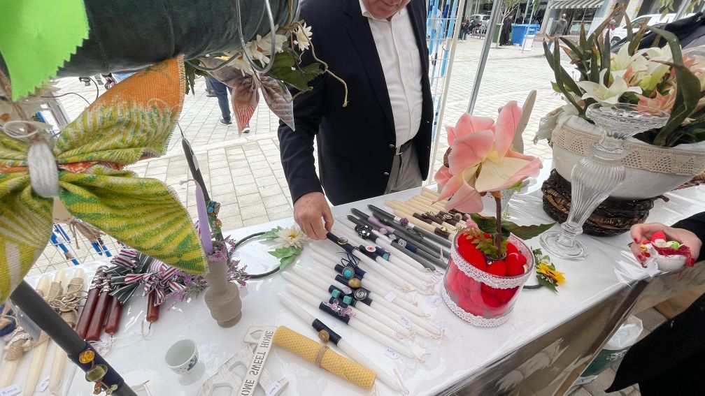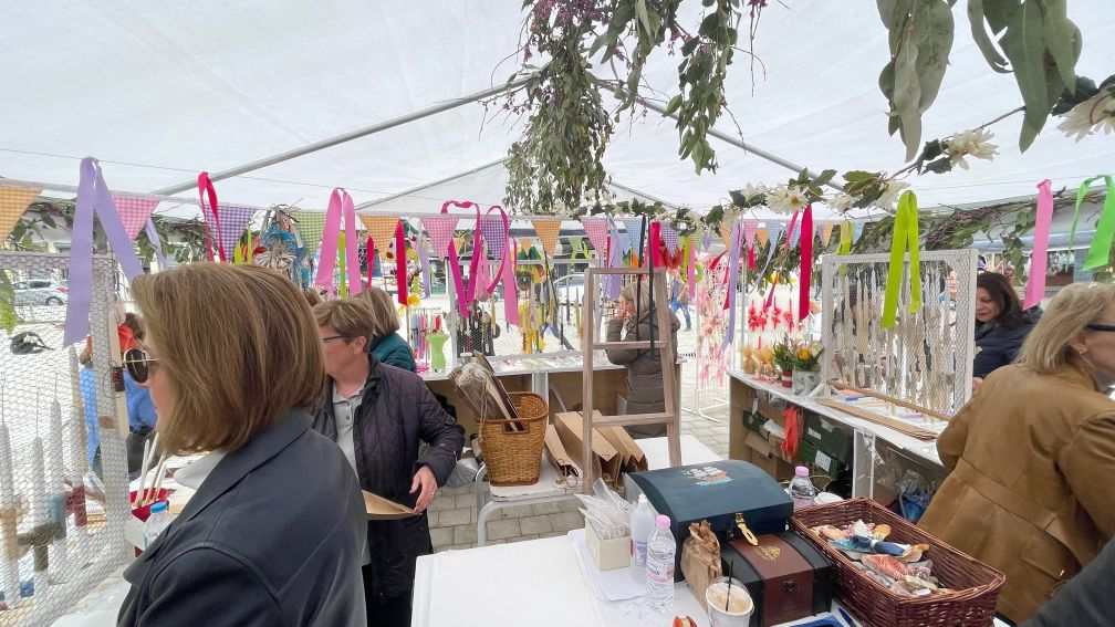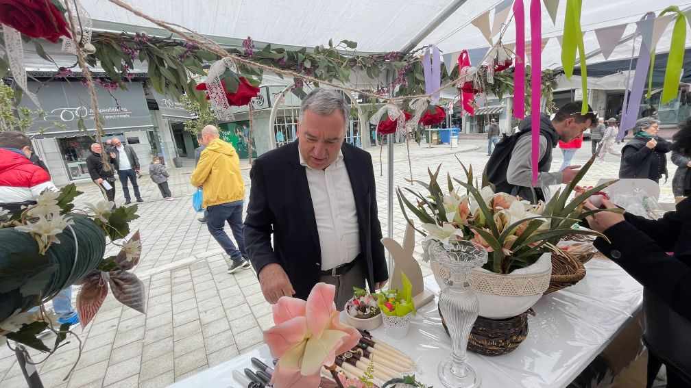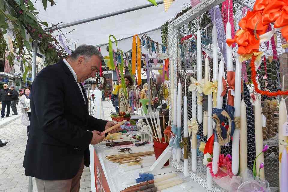 Ένα σκηνικό Πασχαλιάς με τις πιο όμορφες πασχαλιάτικες λαμπάδες! Χειροποίητα, υφασμάτινα λαγουδάκια και κοτούλες, όμορφες ανοιξιάτικες συνθέσεις, λουλούδια και στεφάνια, διακοσμητικά αυγά και τόσα άλλα… Παράδοση, ποικιλία και υπέροχες γεύσεις από την κουζίνα, στο φιλανθρωπικό έργο του συλλόγου με σκοπό την ανακούφιση των σκληρά δοκιμαζόμενων συνανθρώπων μας που προετοίμασαν η Πρόεδρος του Συλλόγου Μαίρη Δούμα και τα μέλη του Διοικητικού Συμβουλίου.