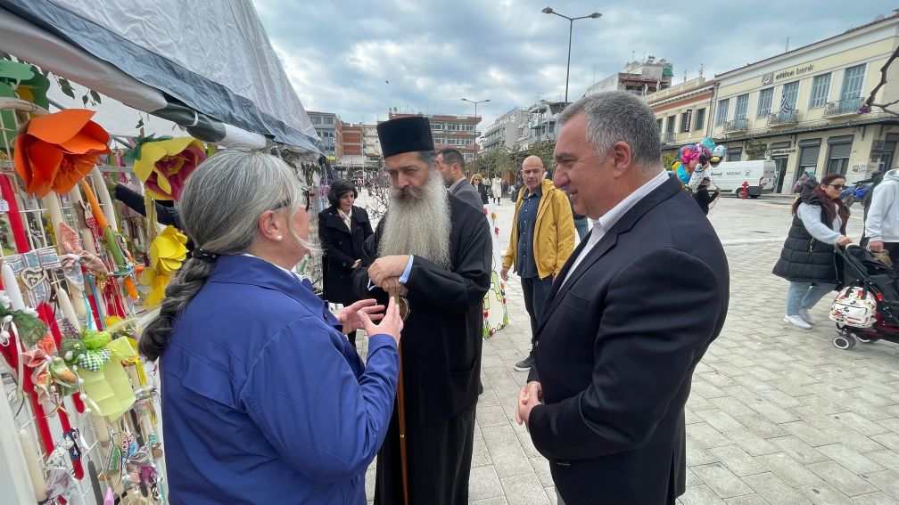Την Πασχαλιάτικη Φιλανθρωπική Αγορά επισκέφθηκαν ο Μητροπολίτης Φθιώτιδας κ.κ. Συμεών, o Δήμαρχος Λαμιέων Θύμιος Καραΐσκος, ο Πρόεδρος του Δημοτικού Συμβουλίου Γιώργος Κυροδήμος και οι αντιδήμαρχοι Δημήτρης Τζούφλας, Δημήτρης Ρίζος, Κώστας Αναστασίου.