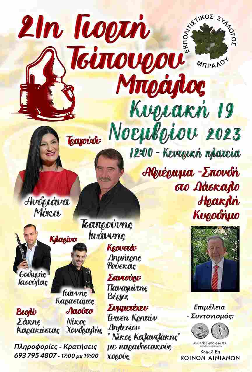 Συνδυάστε την επίσκεψή σας στην έκθεση με μία περιήγηση στο μοναδικό στην Ελλάδα “Μουσείο Άρτου” και με εξορμήσεις εντός και εκτός Αμφίκλειας. Μία εξαιρετική πρόταση για διασκέδαση είναι η 21η Γιορτή Τσίπουρου στον Μπράλο, η οποία διοργανώνεται από τον Εκπολιτιστικό Σύλλογο Μπράλου την Κυριακή 19 Νοεμβρίου 2023 και ώρα 12:00μ.μ στην κεντρική πλατεία του χωριού. Η Ανδριάνα Μόκα και ο Γιάννης Τσαπρούνης θα σας κρατήσουν συντροφιά με τις υπέροχες φωνές τους.