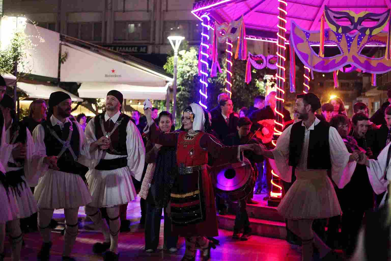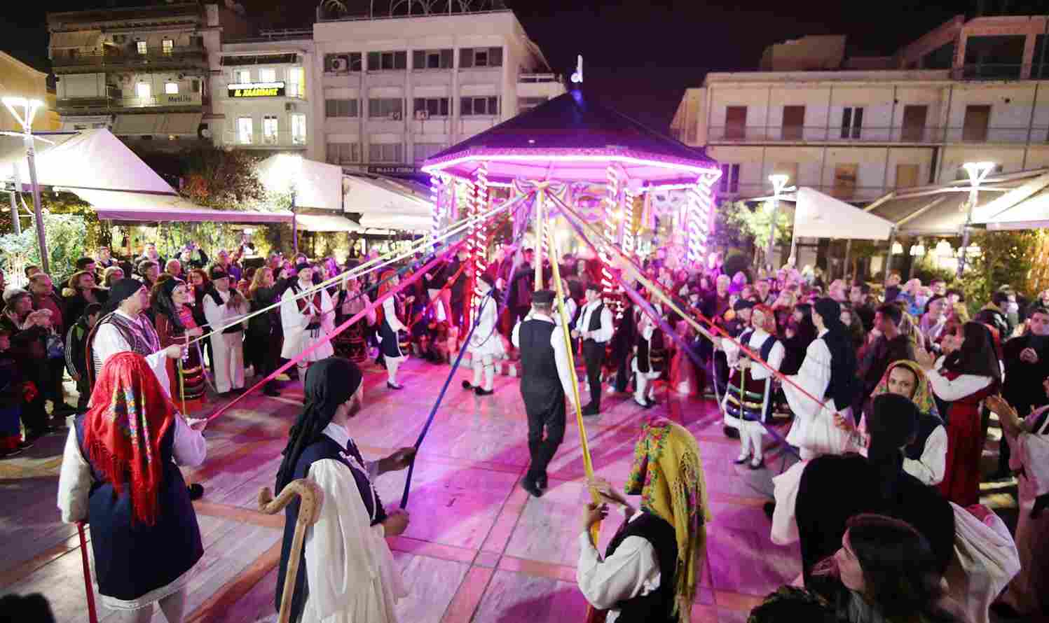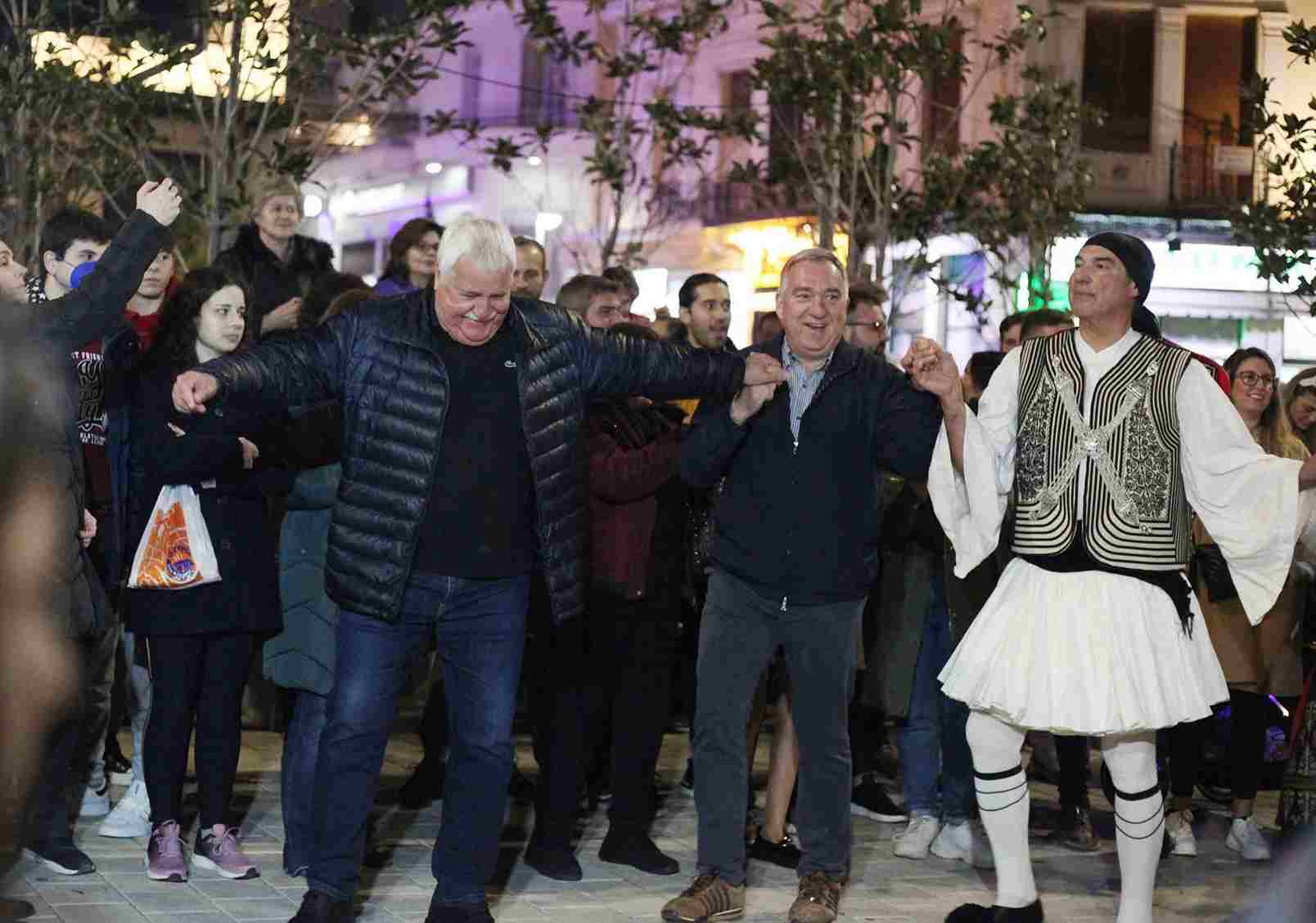 Αφετηρία και στις δύο εκδηλώσεις η πλατεία Πάρκου όπου οι χορευτές του Ομίλου «Χορόπολις», οι μουσικοί του ωδείου «Εν Ωδαίς» και όλοι οι φίλοι του χορού και του γλεντιού διέσχισαν τους πεζόδρομους του κέντρου της πόλης με παραδοσιακή πατινάδα και μπλέχτηκαν με αποκριάτικα γαϊτανάκια, μιμικούς χορούς, συρτά, καλαματιανά, τσάμικα, καγκέλια, νησιώτικα και χασάπικα.