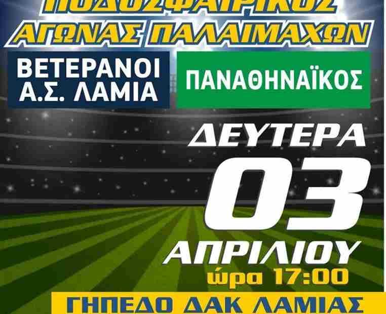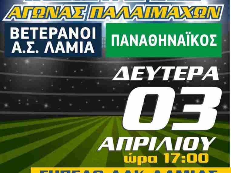 Σας γνωστοποιούμε ότι, λόγω δυσμενών καιρικών συνθηκών, ο ποδοσφαιρικός αγώνας παλαιμάχων Βετεράνοι Α.Σ. Λαμία – Παναθηναϊκός στη μνήμη του Θανάση Αργύρη, που ήταν προγραμματισμένος να διεξαχθεί την Δευτέρα 3 Απριλίου 2023 και ώρα 17:00, στο Δημοτικό Αθλητικό Κέντρο Λαμίας «Αθανάσιος