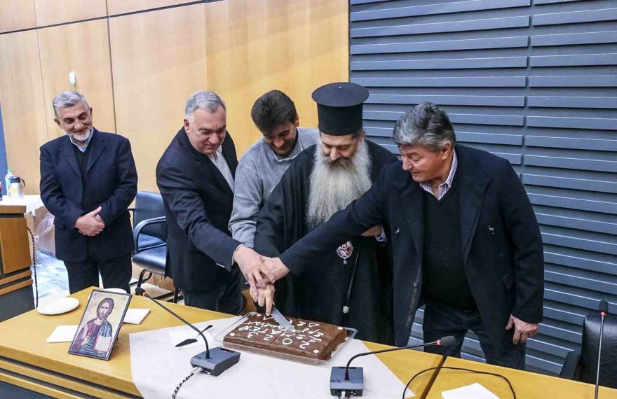 Παρουσία του Μητροπολίτη Φθιώτιδας κ.κ. Συμεών πραγματοποιήθηκε η κοπή της πρωτοχρονιάτικης πίτας της ΔΕΥΑ Λαμίας, ύστερα από πρωτοβουλία του δραστήριου συλλόγου εργαζομένων στο αμφιθέατρο της Δημοτικής Επιχείρησης. Το κλίμα εγκάρδιο και εορταστικό με τον οικείο ποιμενάρχη να ευλογεί την αγιοβασιλόπιτα της ΔΕΥΑΛ, παρουσία του Προέδρου και μελών του ΔΣ της ΔΕΥΑΛ, του